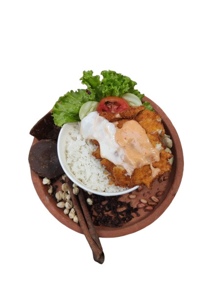 Nasi Putih, Ayam Goreng Balado, Lele Mangut, Perkedel Kentang, Sambal, Es Sarang Burung, Air Mineral