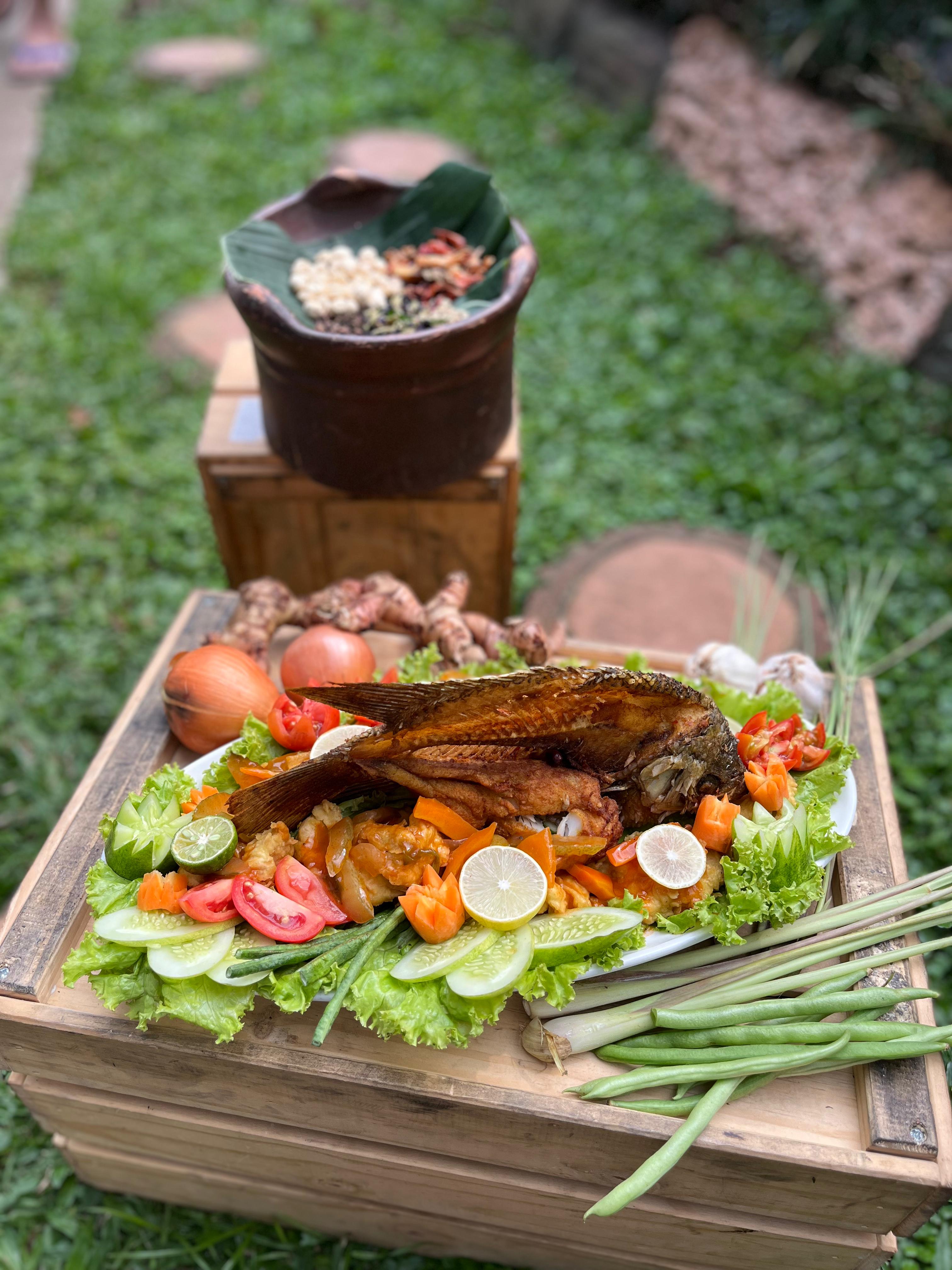 Disajikan dengan sambal manis pedas, sayuran segar, dan irisan jeruk nipis untuk cita rasa segar dan menggugah selera.