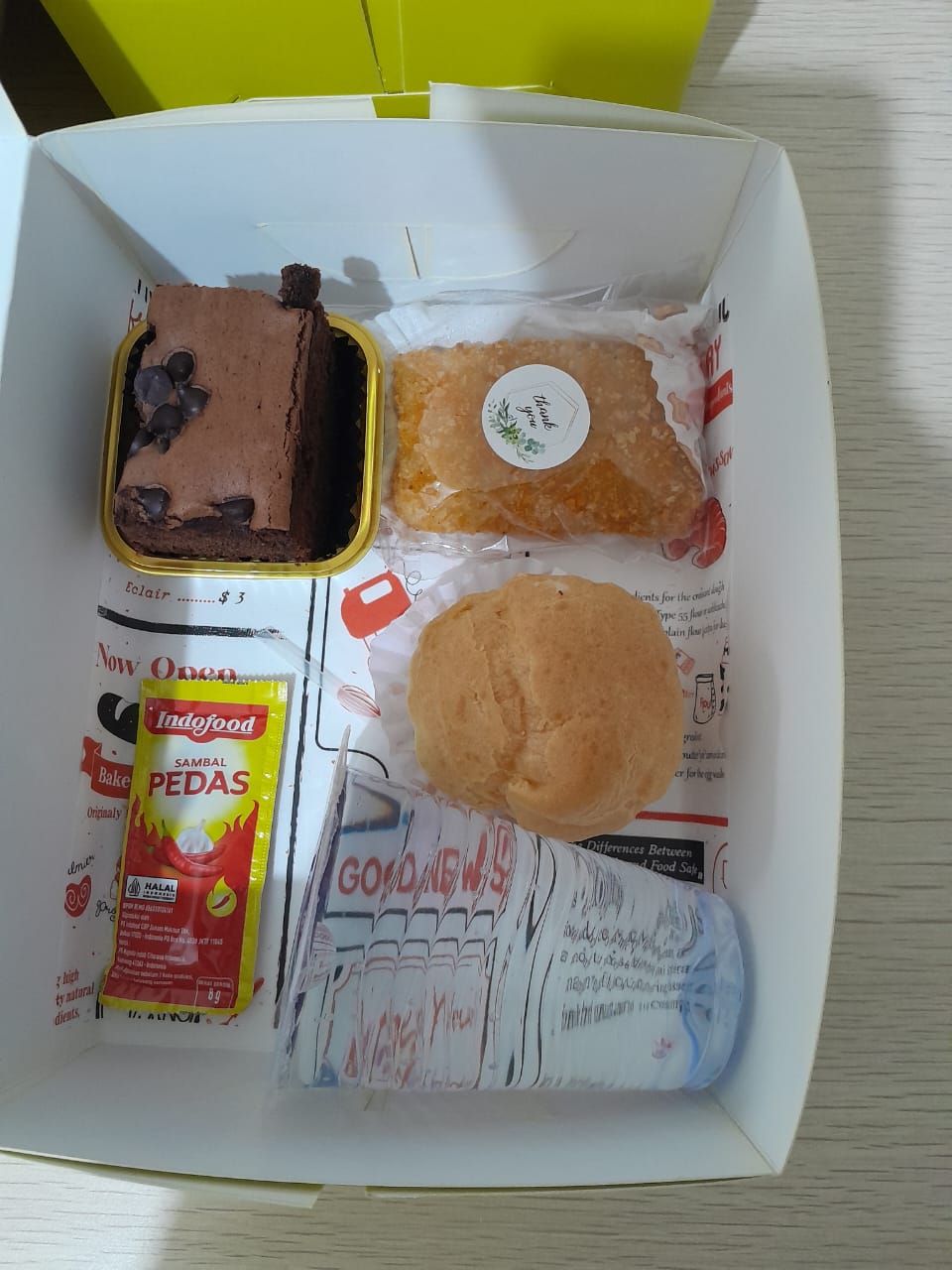 Soes Vanila, Risol Mayo, Brownies, Air Mineral